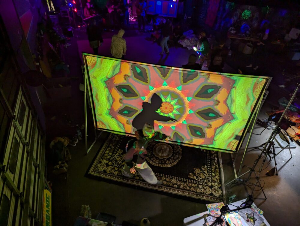 1. Start with a music playlist, live DJ or band, 2. Add some video mixers, VJ software, VHS tapes & live video camera feeds 3. Stir well and watch for magic